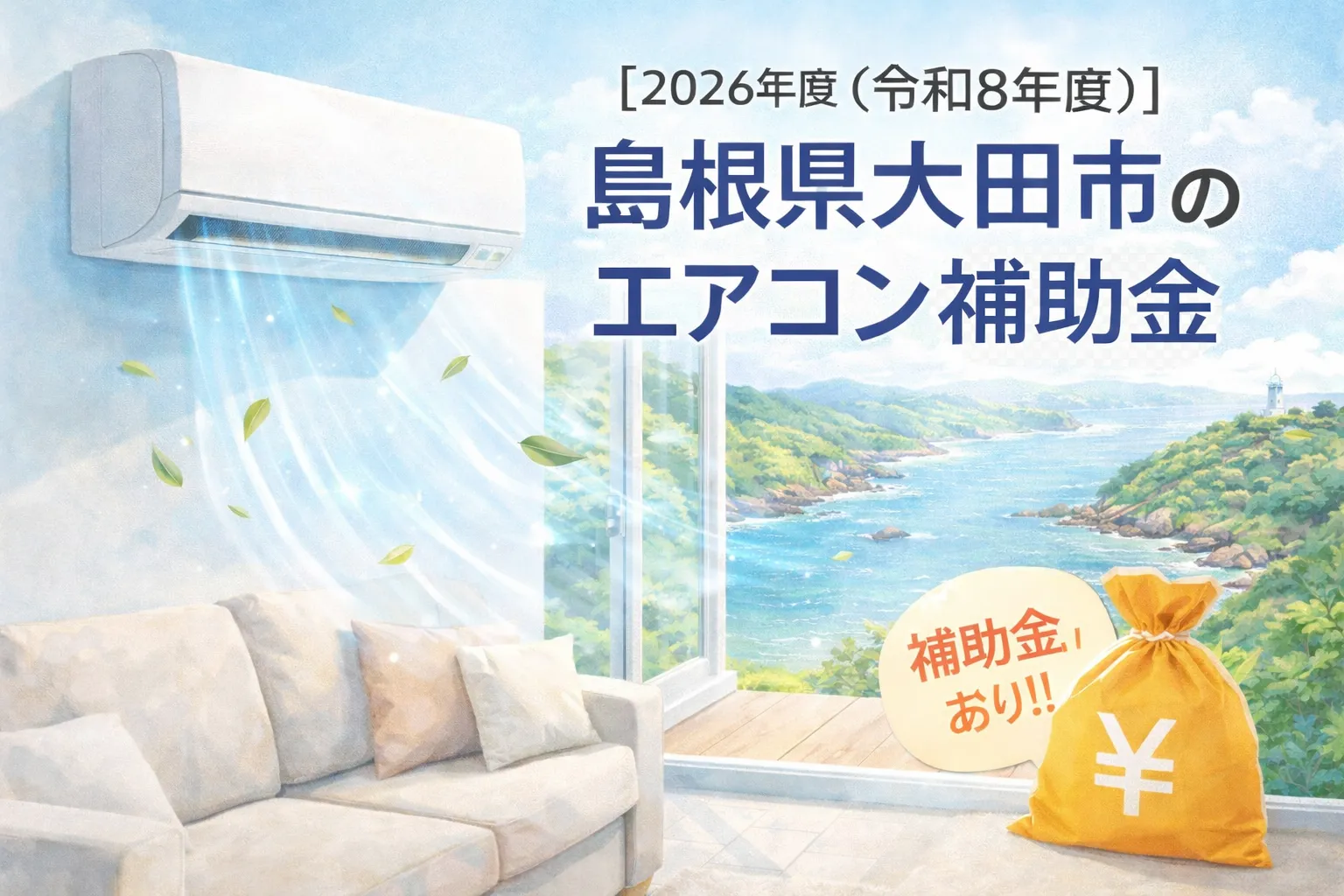 島根県大田市で補助金を探しているなら、まず知っておきたいのは、大田市では2026年も家庭向けのエアコン買換え補助があるということです。制度名は第2弾大田市省エネ家電買換支援事業で、対象はエアコンと電気冷蔵庫・冷凍庫です。しかも今の制度は、通常の先着順ではなく受付回ごとの抽選方式です。第1回と第2回はすでに受付終了していますが、第3回受付は2026年5月7日から5月15日17時までです。第1回・第2回はいずれも申請が予算額を下回ったため、抽選は行われていません。