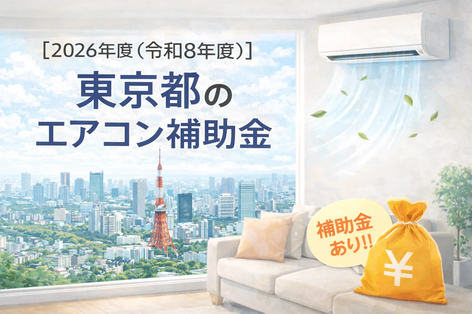 東京都でエアコン補助金を探しているなら、まず押さえたいのは、主役制度は東京ゼロエミポイントだということです。通常買替え、長期使用家電からの買替え、新規購入、高齢者・障害者向け支援の4つがあり、自分がどれに当てはまるかで値引き額が変わります。